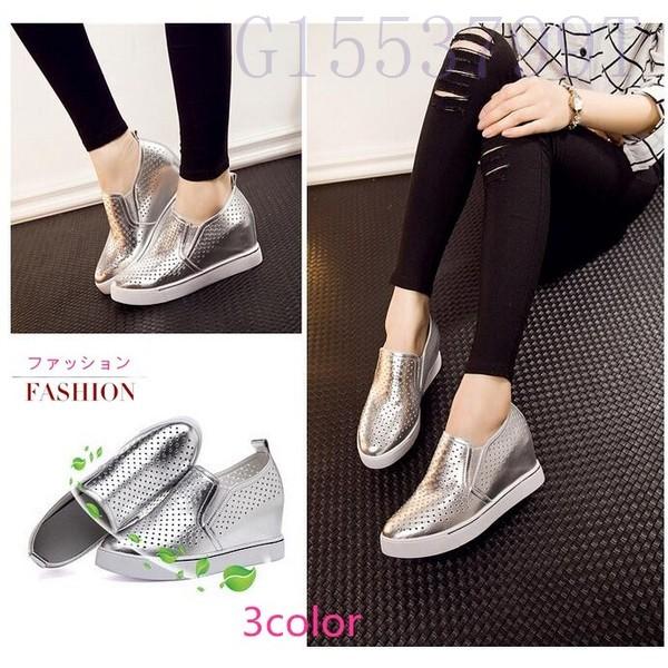 レディースシューズスニーカースリッポンレディースシューズローファーレザーレディース靴3cmインソール厚底ヒールアップシルバー G1553 55 ヨシモンショップ 通販 Yahoo ショッピング
